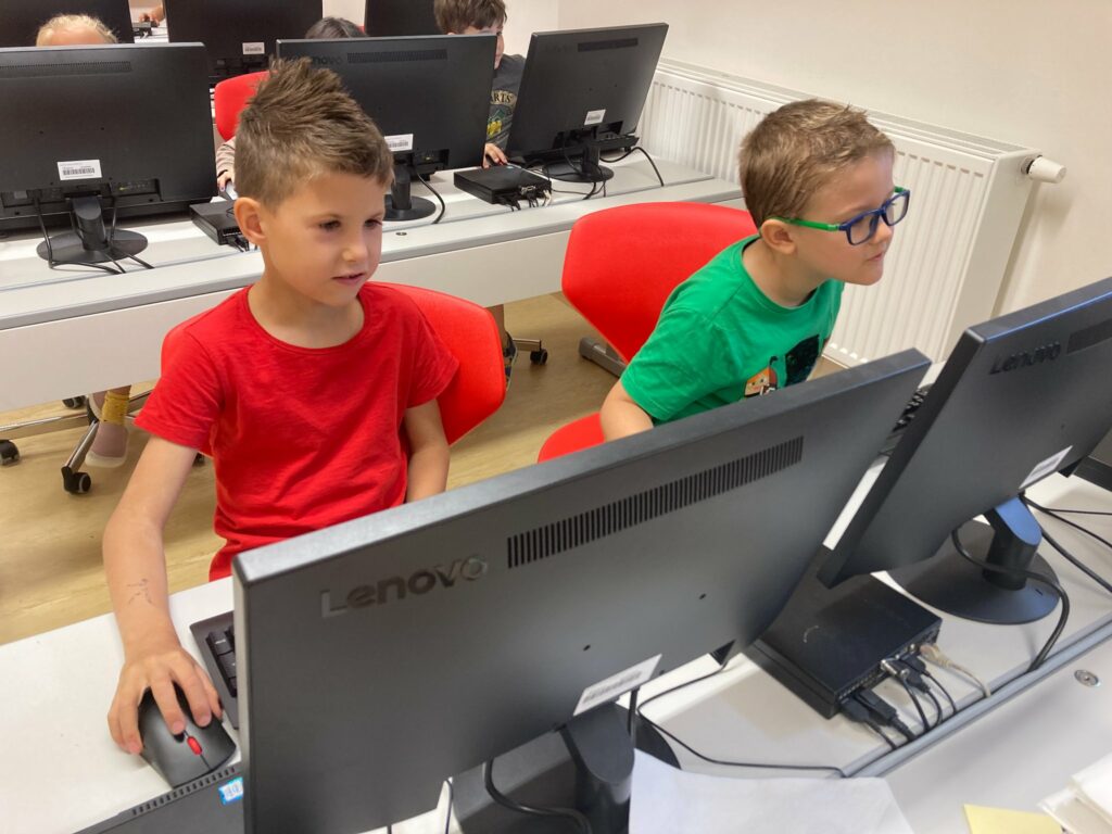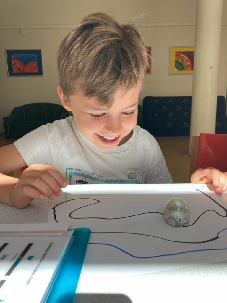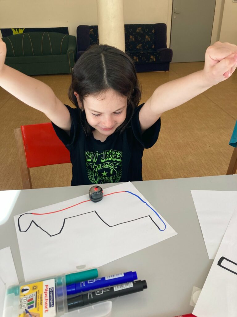 Na workshopu pod vedením organizace Czechitas si vyzkoušeli interaktivní „hračky“. S malým robotem Ozobotem mohli popustit uzdu fantazii i potrápit mozkové závity. S pomocí obyčejných fixů a papíru „programovali“ a testovali jak je robot poslouchá. Objevili možnosti stavebnice Lego Boost a k programování použili pokročilejší nástroje – stejnojmennou aplikaci. Co přijde příště, když v první třídě programují? Možná MMIT obor gymnázia Hello?