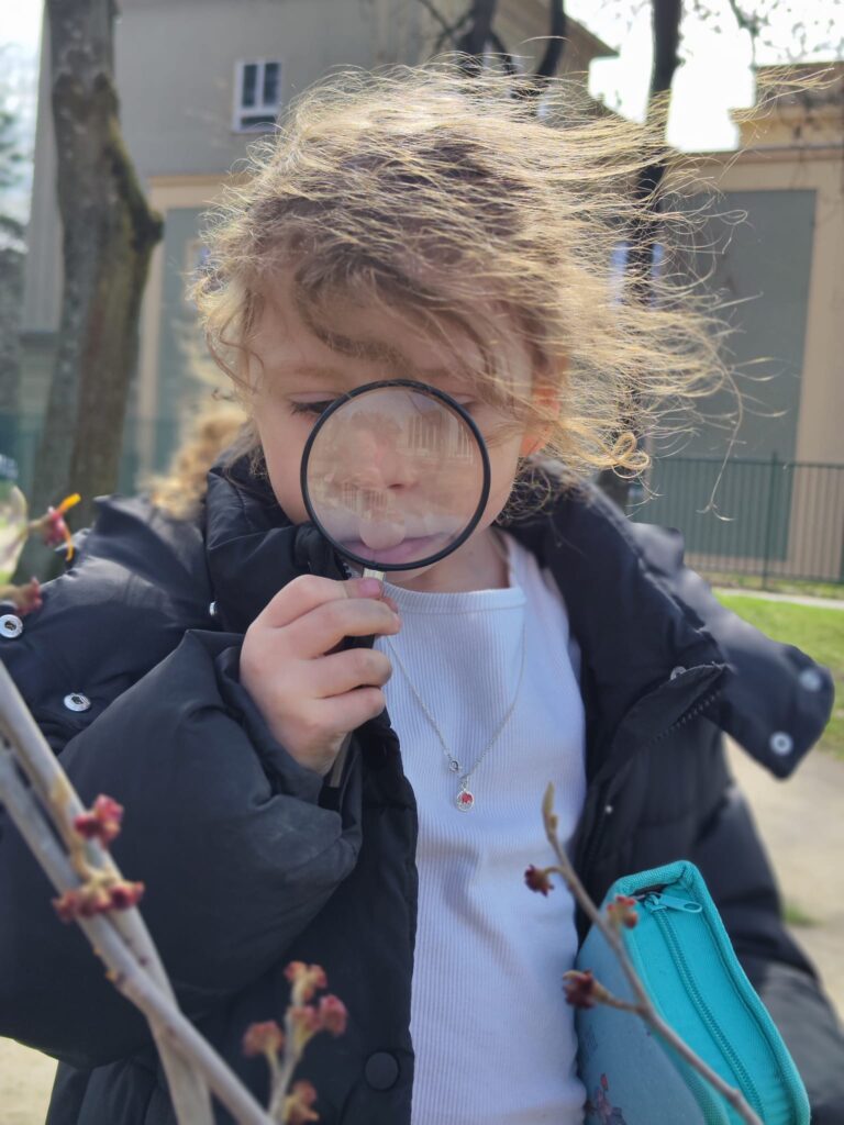 Vyrazit ven do přírody a jen tak si bádat, to je vždycky radost. A stejně nadšeně naši nejmenší pracují i v galerii výtvarných umění. Zkoumali i tady, tentokrát slovo, zvuk i obraz – všechny možnosti vyjádření. A šlo jim to. Uvidíme, co z nich vyroste. Našim úkolem je nabídnout jim co nejvíce podnětů. Něco zakoření.